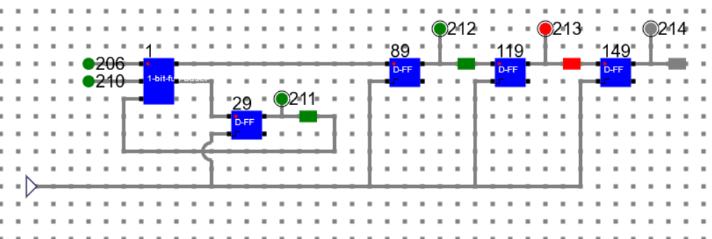 Input Bits: 1[206], 1[210] and Carry In: 0[211]
